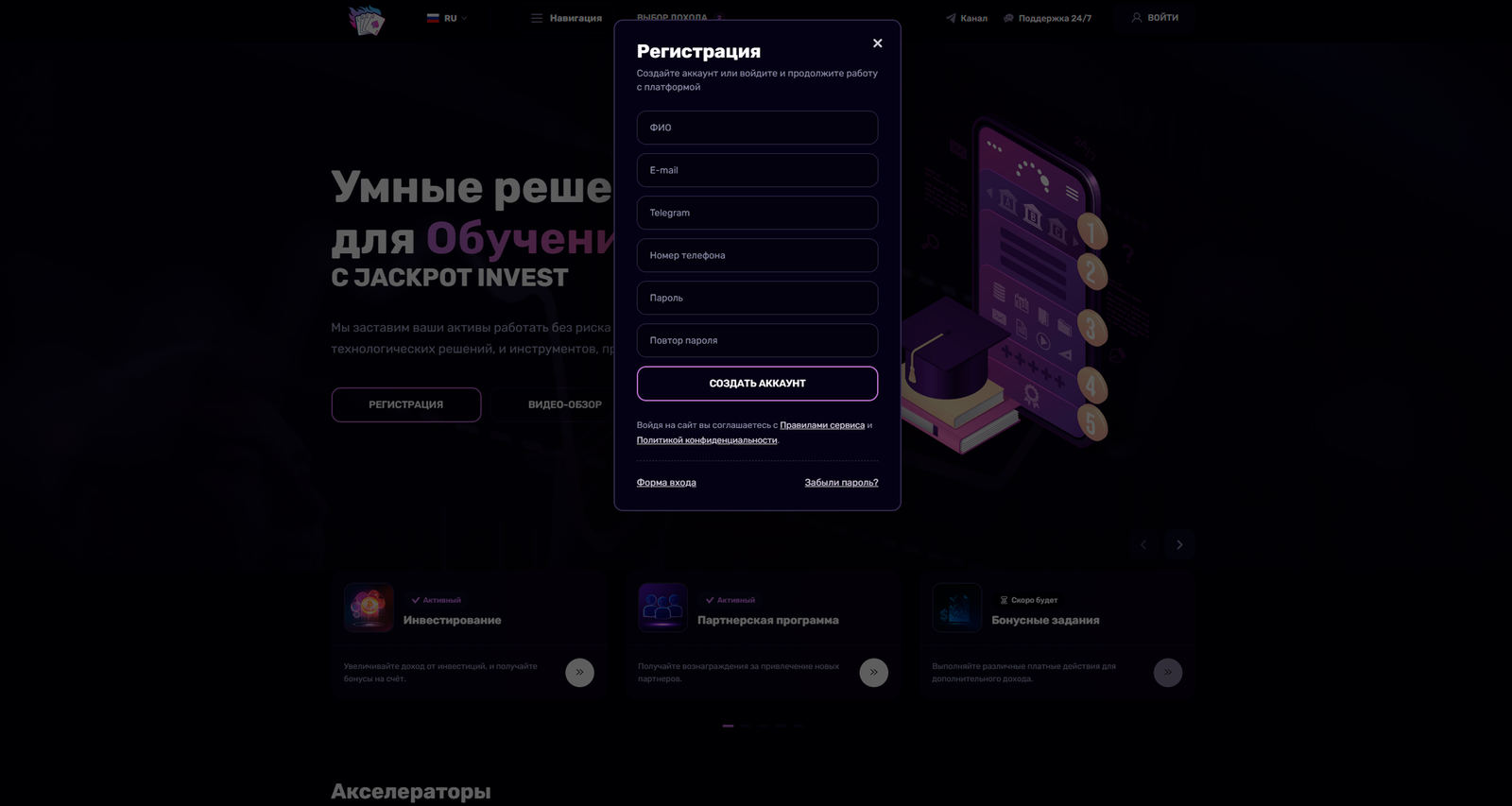 Создайте аккаунт в Join Staking