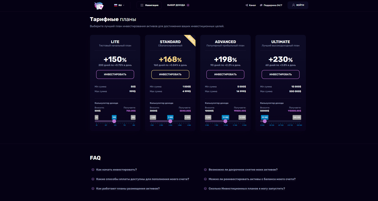 Платформа Join Stakingпредлагает несколько планов инвестирования. Они отличаются размером депозита, его сроком действия и уровнем доходности. Выберете наиболее подходящий вариант для получения прибыли.